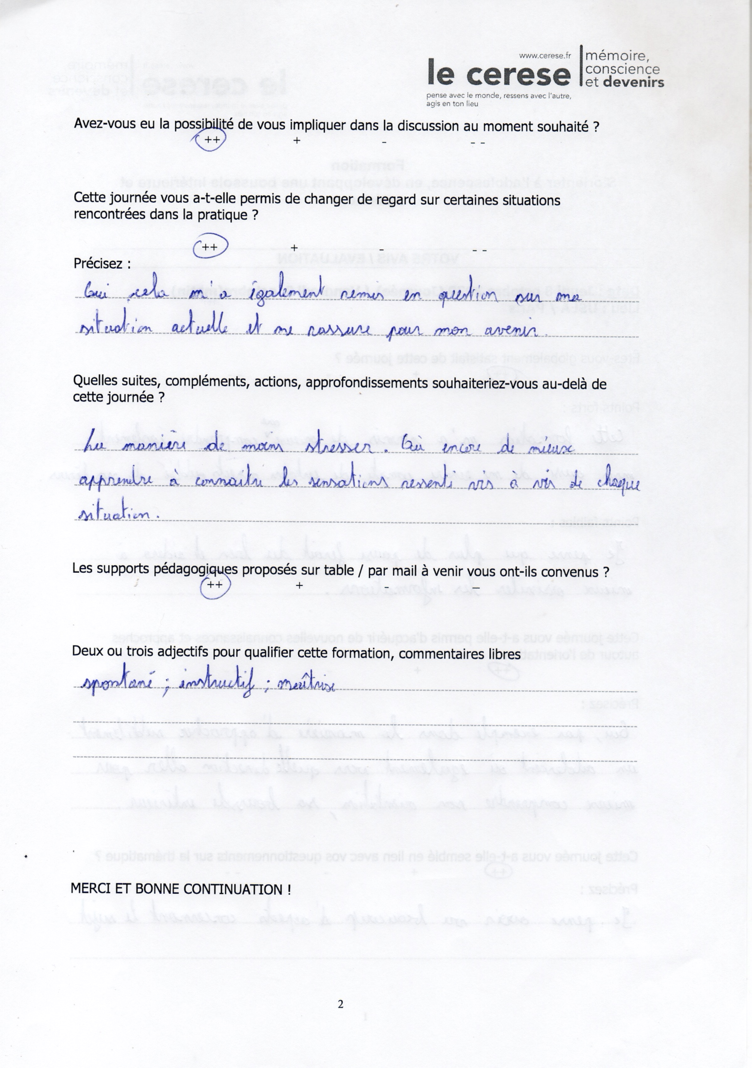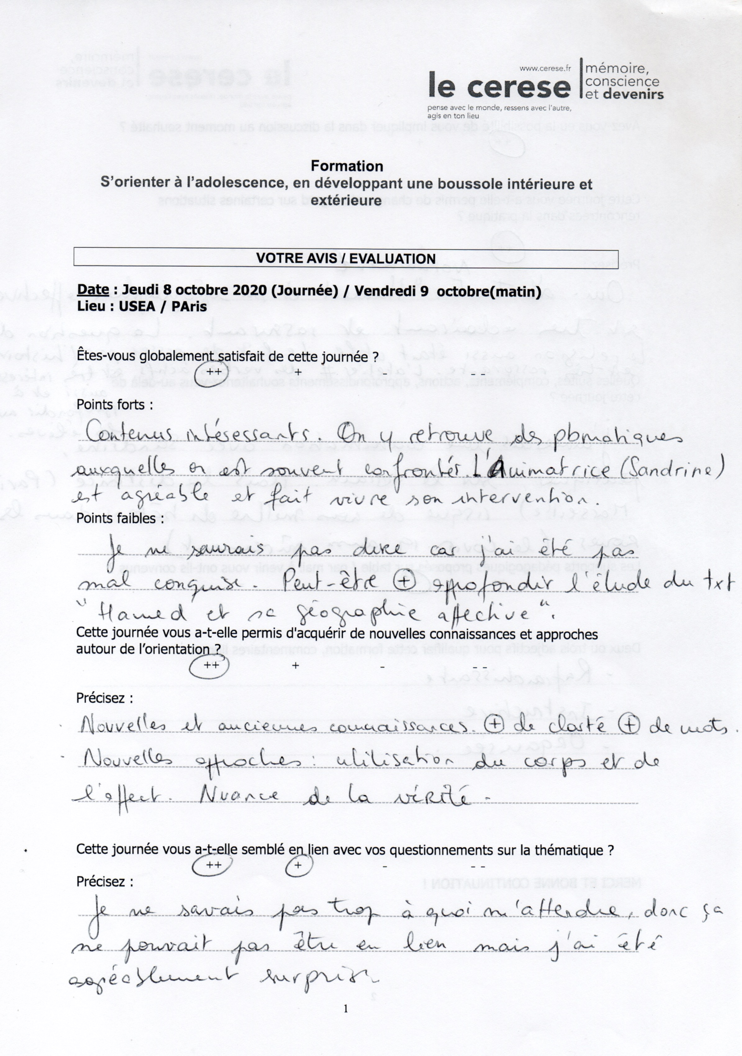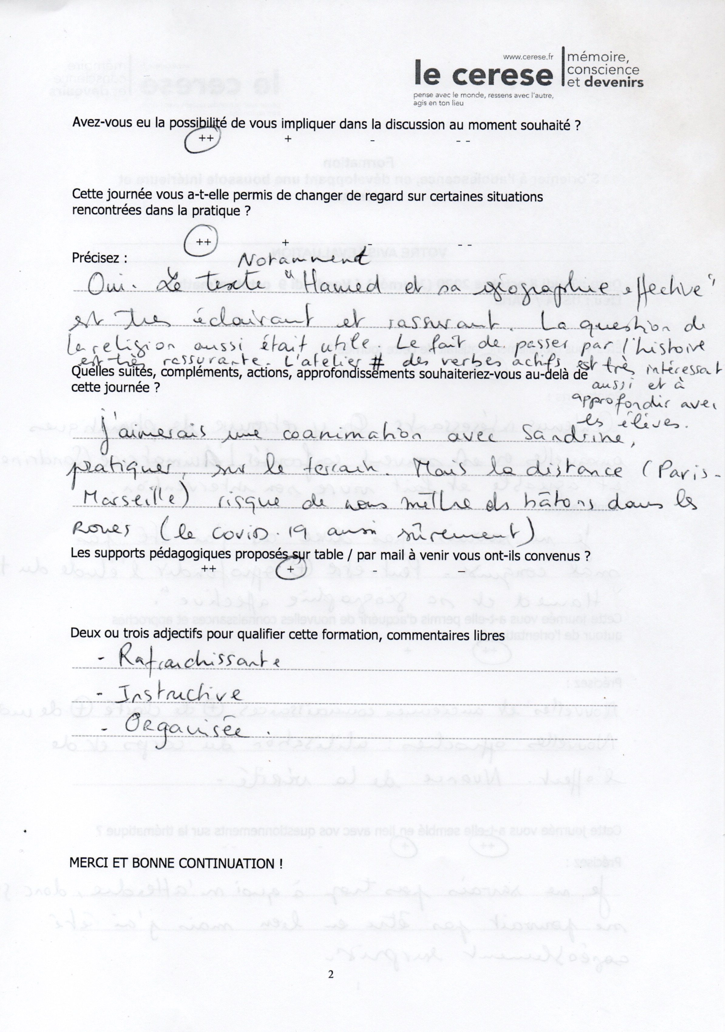 - Transmission par Le Cerese / Sandrine Delrieu de contenus pédagogiques élaborés pour les ateliers créatifs avec les jeunes (apports pluridisciplinaires, analyse de situation, outils, livrets pédagogiques…). Ce partage permet aux personnes présentes de pouvoir les utiliser ensuite, de manière autonome, dans leur accompagnement de jeunes et parents, en faisant des liens avec leurs propres ressources et besoins.
