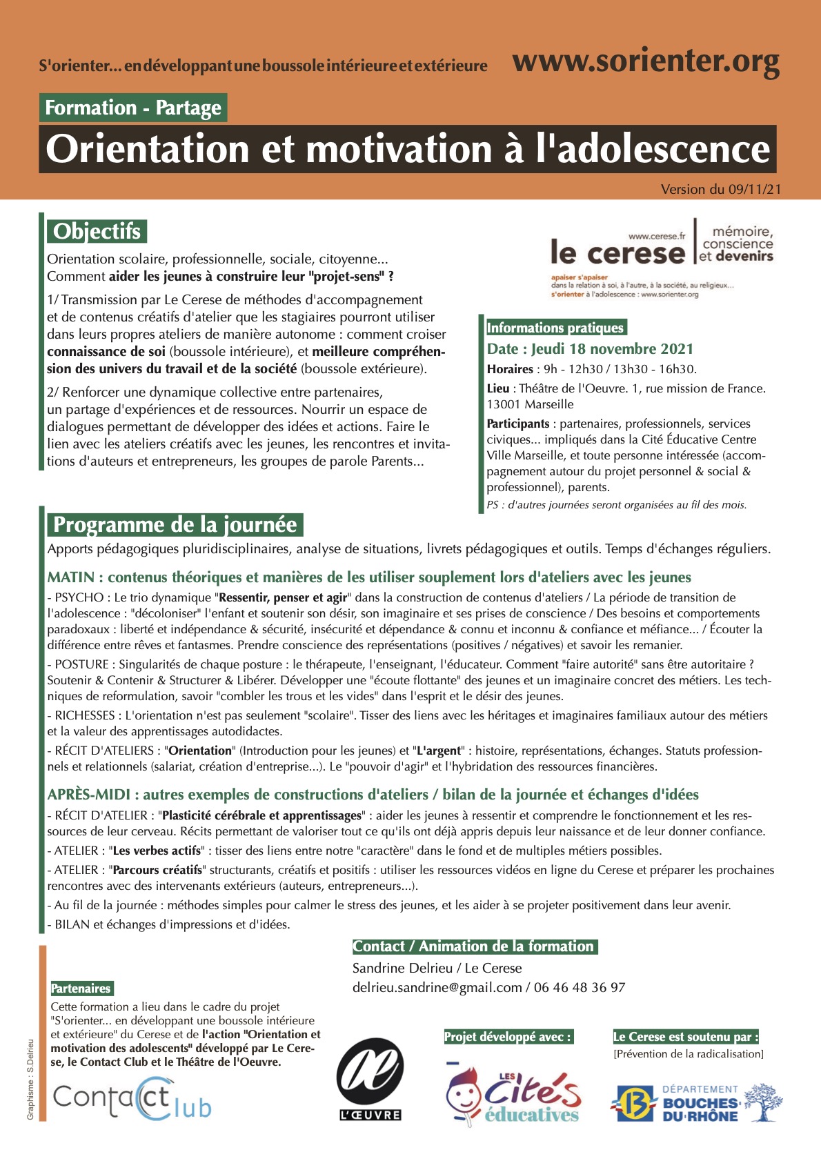 Dans le cadre du projet « Orientation et motivation à l’adolescence » développé par Le Cerese, le Contact Club et le Théâtre de l’Oeuvre avec la Cité Éducative Centre Ville Marseille (voir ICI),
